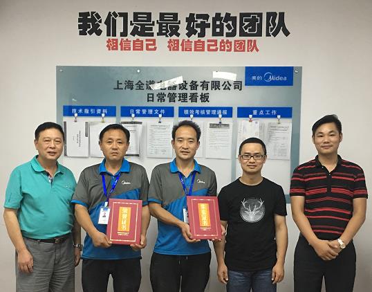 2018年6月28日11时许,浦北路近桂林西街发生恶性歹徒伤人事件。当时我协会会员、美的空调特约网点上海全谦电器设备有限公司的两名安装工阚方方和朱拴紧正在去往浦北路一用户家安装空调,经过事发地点时,突然见到现场危险情形,果断下车,拿起水平尺和大扳手冲过去,并联合2名保安与歹徒进行搏斗,保安使用防暴叉将歹徒击倒后,四人一拥而上将歹徒制服,阚方方师傅用捆机绳将歹徒手脚反绑严实。随后特警赶到对案发现场进行接管,两位安装工与警方简单交代之后随即赶往用户家将空调安装完毕,再赶去警局做了详细的笔录。