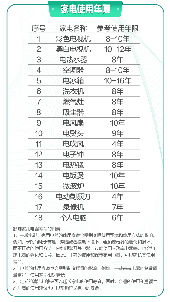 随着人们生活水平的提高,家电已经成为家庭生活的必需品。但是,您知道家电也有使用年限吗?超过使用年限的家电可能会对您的健康和生活带来危害。根据行业发布的..